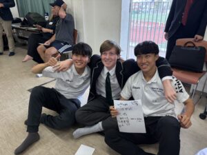 当初は「本校 vs ジーロング・カレッジ」という対戦形式を予定していましたが、より深く交流するために、急遽両校の生徒をミックスしたチームを編成して試合を行いました。