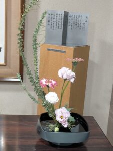 土曜日は中学生対象の本校入試説明会。ご来校くださる皆さんが少しでも和んでくださったらいいなと思い、茶華道部ではエントランスホールにお迎え花を入れさせていただきました。