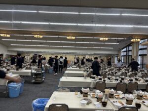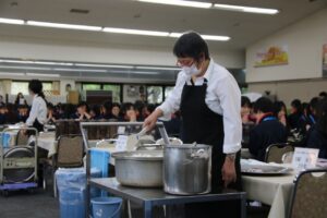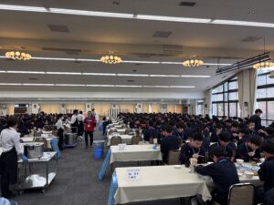 昨日以上にお腹を空かせて食堂にやってきた生徒たち。しっかりと夕食をとりました。