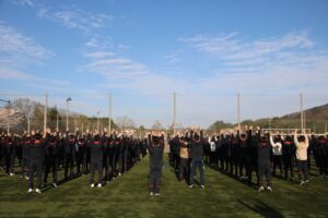 この日は6:30にグラウンド集合という健康的なスケジュール。眠い目をこすりながら、生徒たちが宿舎から出てきます。