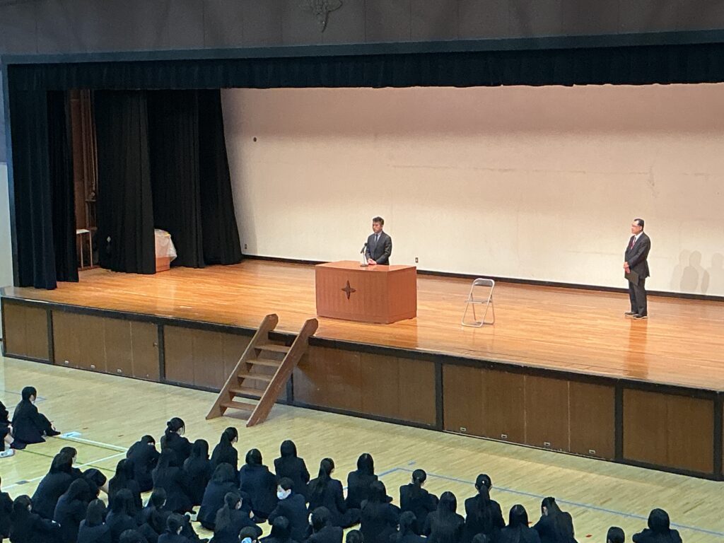 今年1年を振り返り,校舎内を周った際に気づかれたこと,発見することの大切さ,新学期に向けての心構えをお話されました。