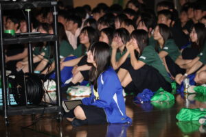 3年間の思い出が蘇ってきてすごく感動しました。K組全員で歌った有志発表は,ほとんど練習なしで本番に挑みました。でも,そこがK組らしくてよかったです!クラスや学年の仲の良さを改めて実感できるすごくいい行事でした!