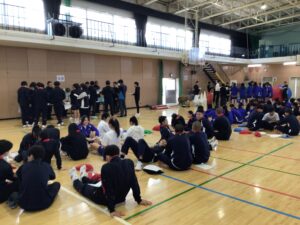 ▼体育館にて、召集の段取りや競技ルールの確認。体育祭実行委員のみんな、ありがとうございます!