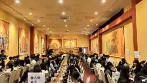 朝8時に羽田空港に集合。参加者108名,全員出席で飛行機に乗り込みました。約3時間のフライトで那覇空港に到着し,首里天楼別邸でジューシーや沖縄そばなど沖縄料理の昼食をいただきました。