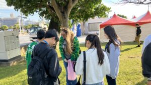 9時から15時まで沖縄に住む外国人とグループで過ごすフレンズアブロードを行いました。英語でのコミュニケーションに苦戦するグループも見られましたが,北谷のアメリカンビレッジでショッピングをしたり,おすすめのお店で昼食をとったりしながら,楽しい時間を過ごすことができました。その後前田高地に向かい,事前学習で観た「ハクソーリッジ」の舞台を実際に見学し,再び沖縄戦や平和について考える時間となりました。