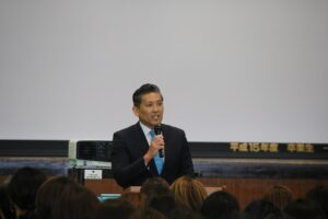1年生のみ、修学旅行説明会の後、各教室にて昼食会を挟んでクラスの保護者会が開催されました。
